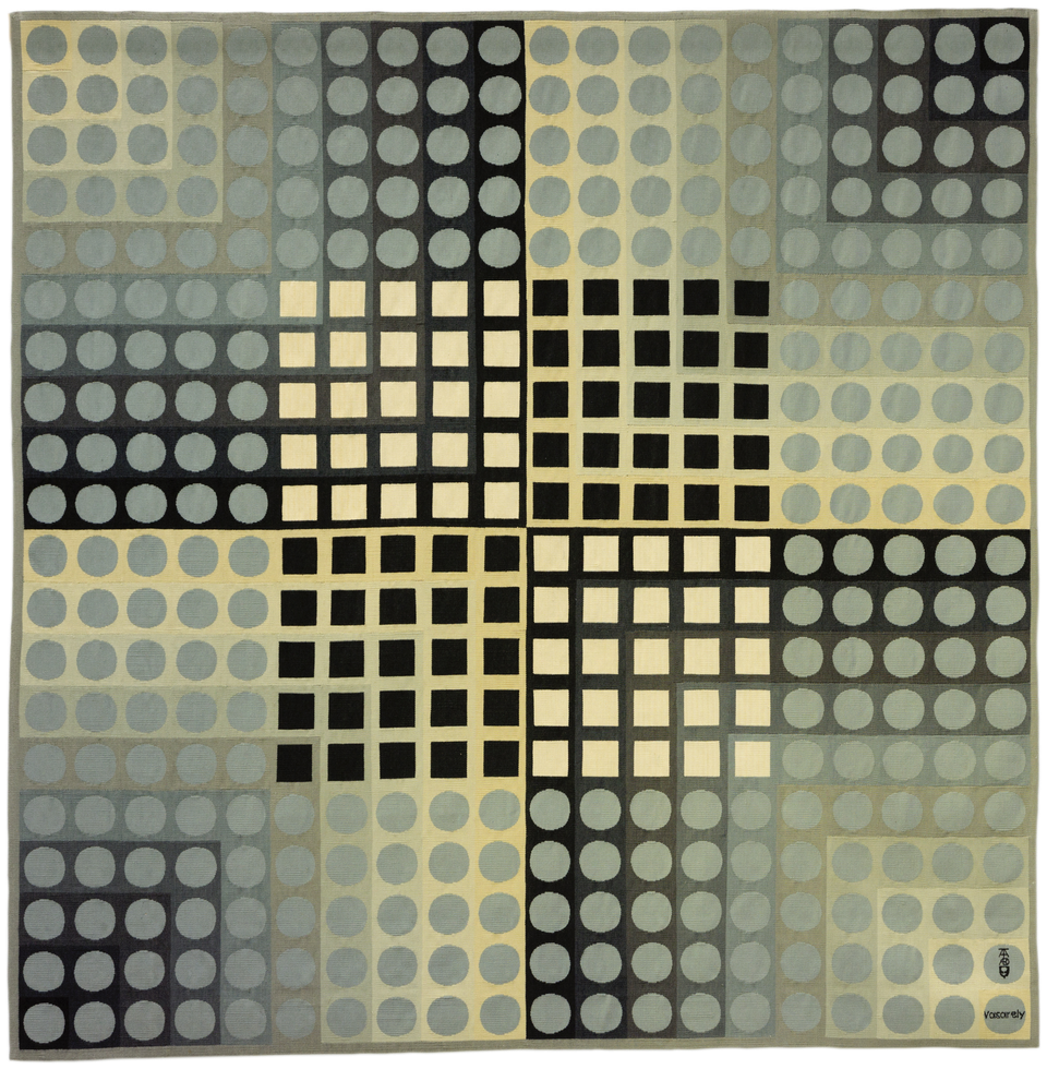 Highly expressive interior decoration, or space-consuming work of Op Art? Victor Vasarely blurred the boundaries between free and applied art. His concepts draw on medical and mathematical findings about perception. He explored them comprehensively in his art: his wall and ceiling structures seem to make the room vibrate as the viewer traverses it. A Hungarian-born Frenchman, the founder of Op Art is one of the great artists of the twentieth century. Vasarely moved between the various styles of the interbellum period and post-war modernism. His artistic roots lay in his explorations of early modern art. He took inspiration and orientation from theories of the Bauhaus, Suprematism and geometric abstraction.