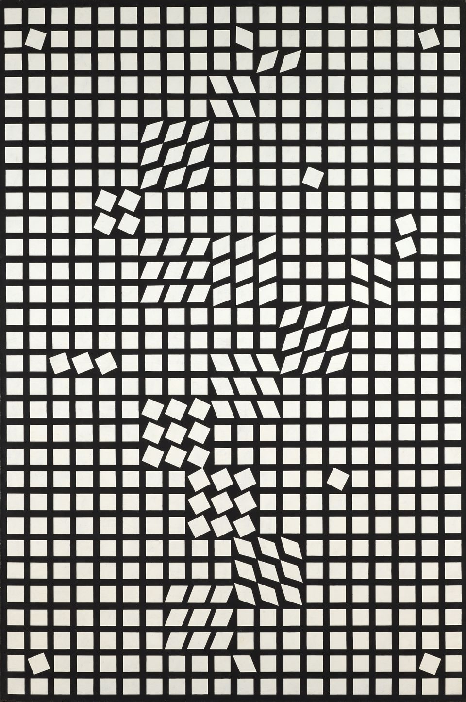 Vasarely now made visual experience the chief focus of his works. This pursuit required no colour: strong contrasts suffice to create an optical illusion. For several years, he accordingly limited his palette solely to black, grey and white. He also used the square again and again as a functional element in play with visual perception.