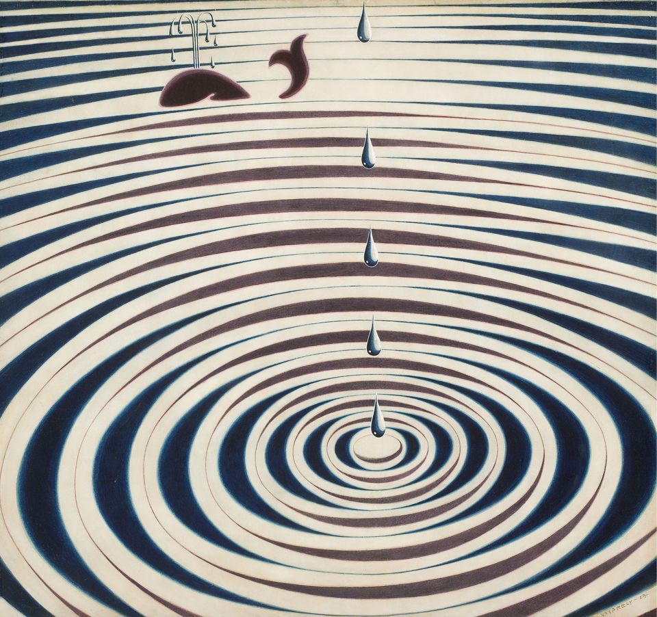 The eye glides rhythmically from one wave to the next. The rings curve themselves around the centre at regular intervals. Likewise in a regular pattern, they grow now wider, now narrower. An impression of movement is created. This phenomenon is undoubtedly what appealed to Vasarely most about the depiction. He nevertheless gave it a kind of narrative content by adding drops of water and a whale.