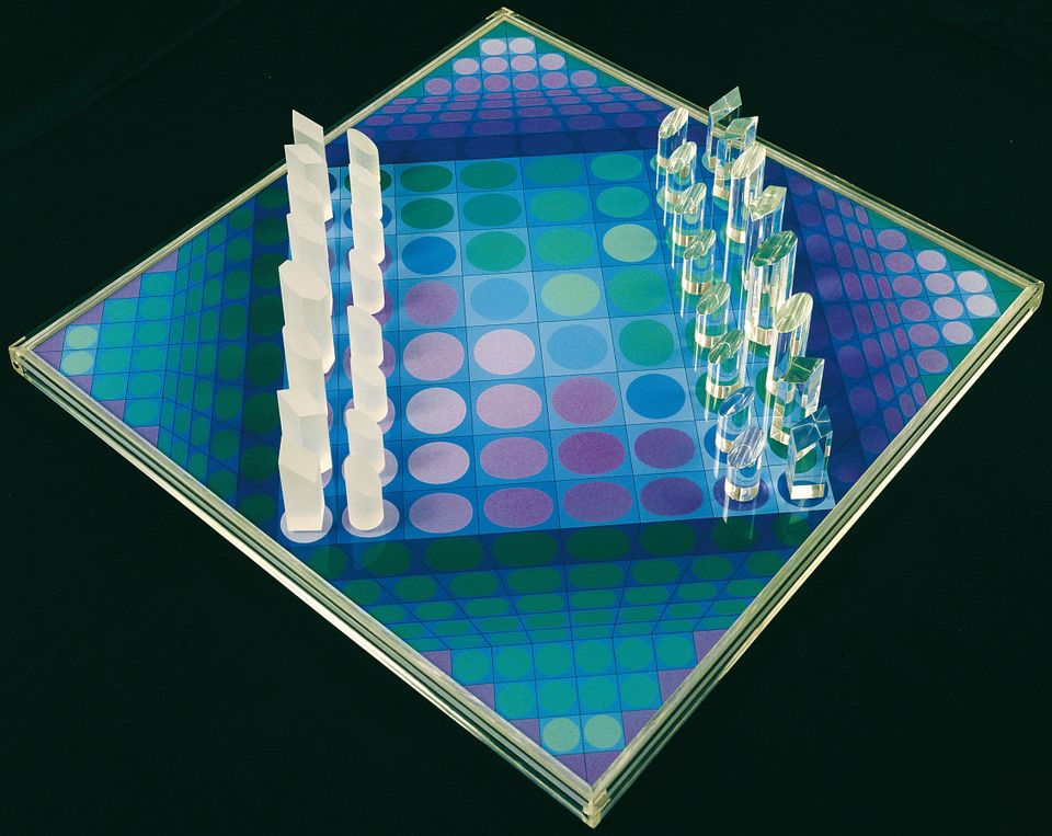 At the same time, Concept Art was on the rise in Europe and America. This current distinguished clearly between the idea of a work and its execution. Now the artist supplied the instructions, but often did not concretely specify the work’s actual realization. It could be carried out by a random person. Vasarely made use of this approach in his “Plastic Alphabet”: in 1969 he put a saleable building set on the market, accompanied by the motto: “Make your own Vasarely!”
